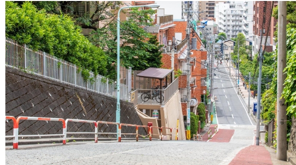のぞき坂は、東京都内でもかなり急な坂道で、自動車が通れる道路の中でもトップクラスの傾斜と距離なんです。