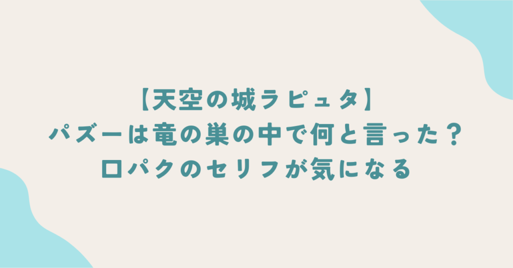 【ラピュタ】パズーは竜の巣の中で何と言った?口パクのセリフが気になる