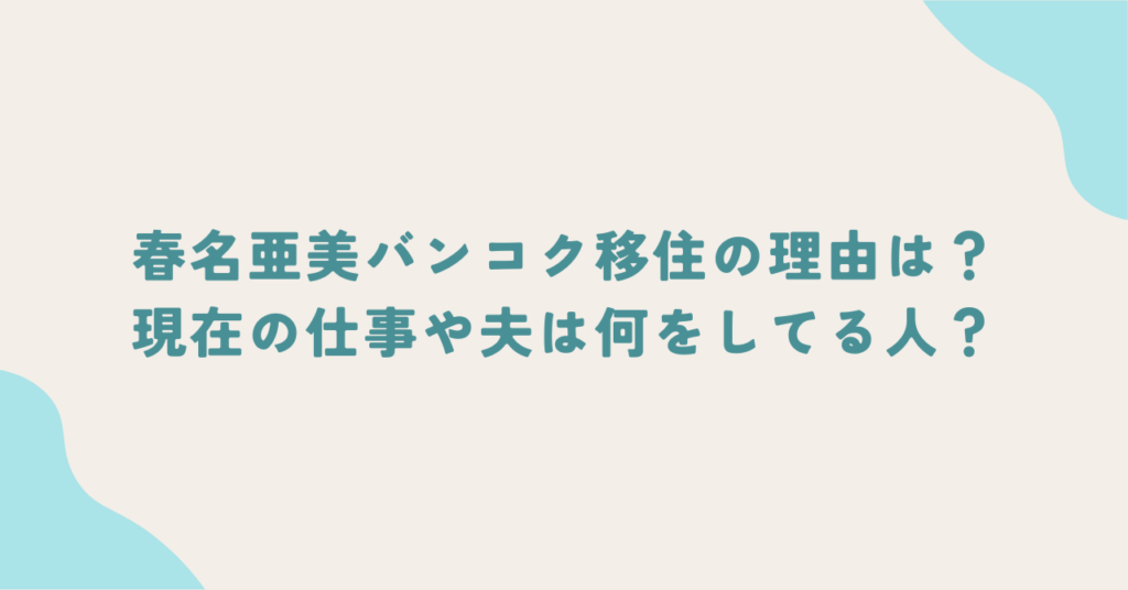 春名亜美バンコク移住の理由は?現在の仕事や夫は何をしてる人?