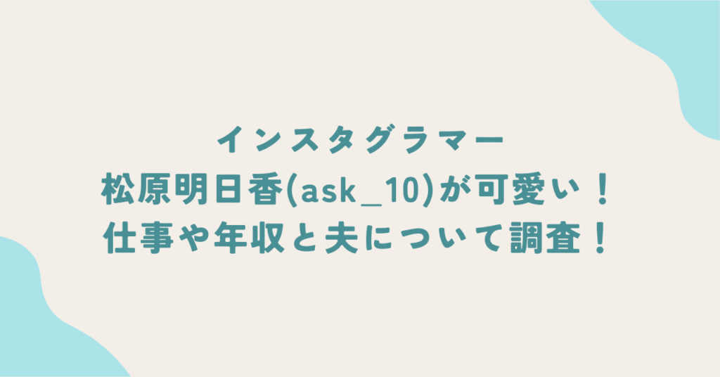 松原明日香(ask_10)が可愛い!仕事や年収と夫について調査!